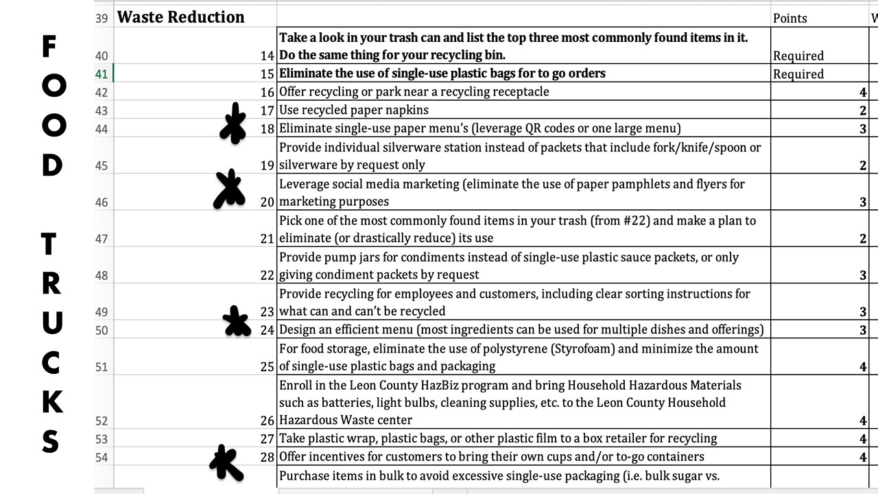 Specifically, Zach focused on creating application templates for food trucks and non-brick and mortar businesses, which have different sustainability challenges than traditional businesses. For example, Zach identified unique ways that that food truck vendors could reduce their waste, including:
